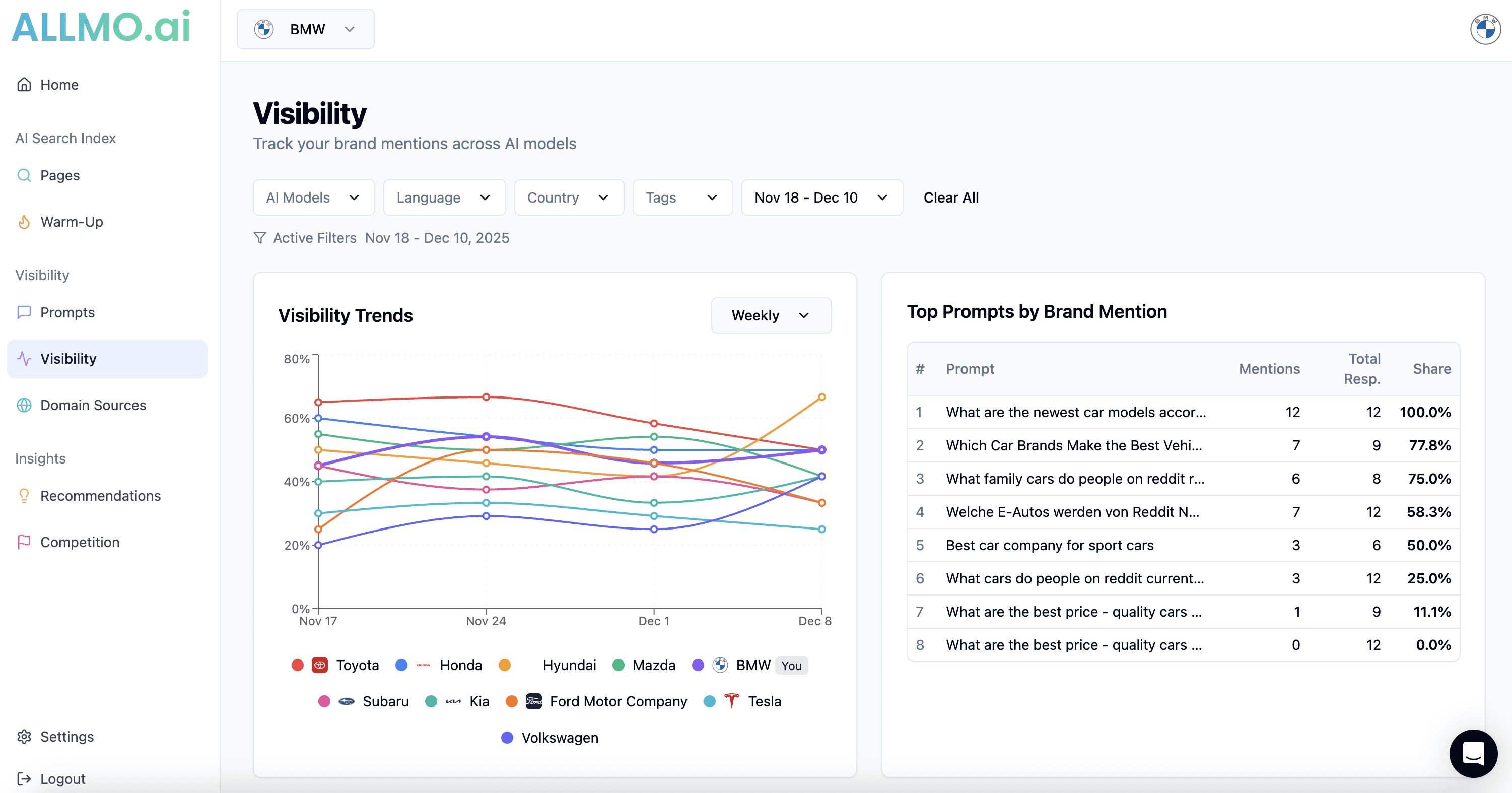 Measure, analyze, and optimize your brand's visibility across all leading AI models.